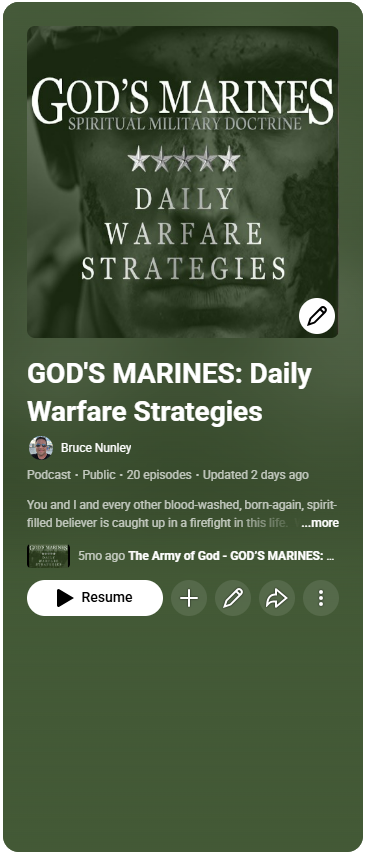 God is continuing to bring us into greater truths and we are excited about ministry this year. We will continue to publish new content on our Youtube Channel following along in the Series “GOD’S MARINES: Daily Warfare Strategies.”